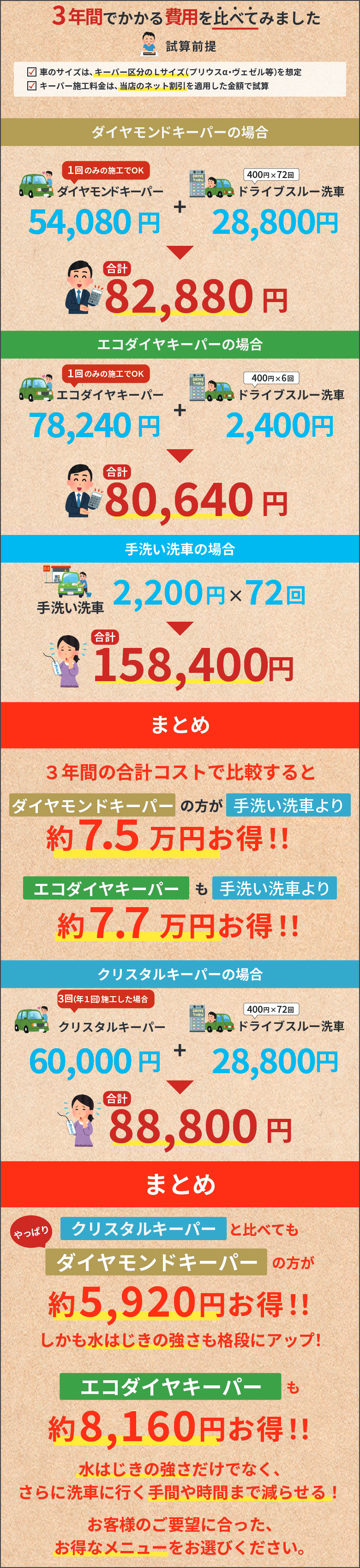 カーディーラーや車販売店のコーティング料金より断然お得!
